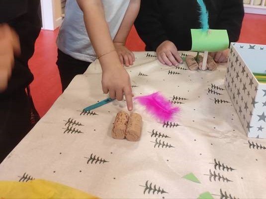 Mit großer Neugier probierten die Kinder verschiedene Materialien wie Stein, Kork, Holz, Plastik oder Federn aus. Sie stellten Vermutungen auf, überprüften diese im gemeinsamen Experiment und entdeckten so spielerisch naturwissenschaftliche Zusammenhänge.