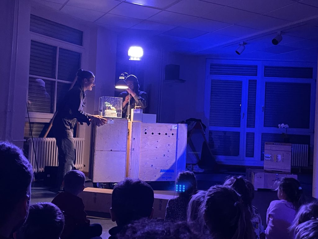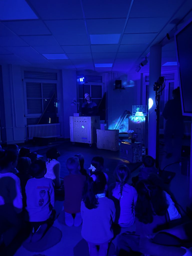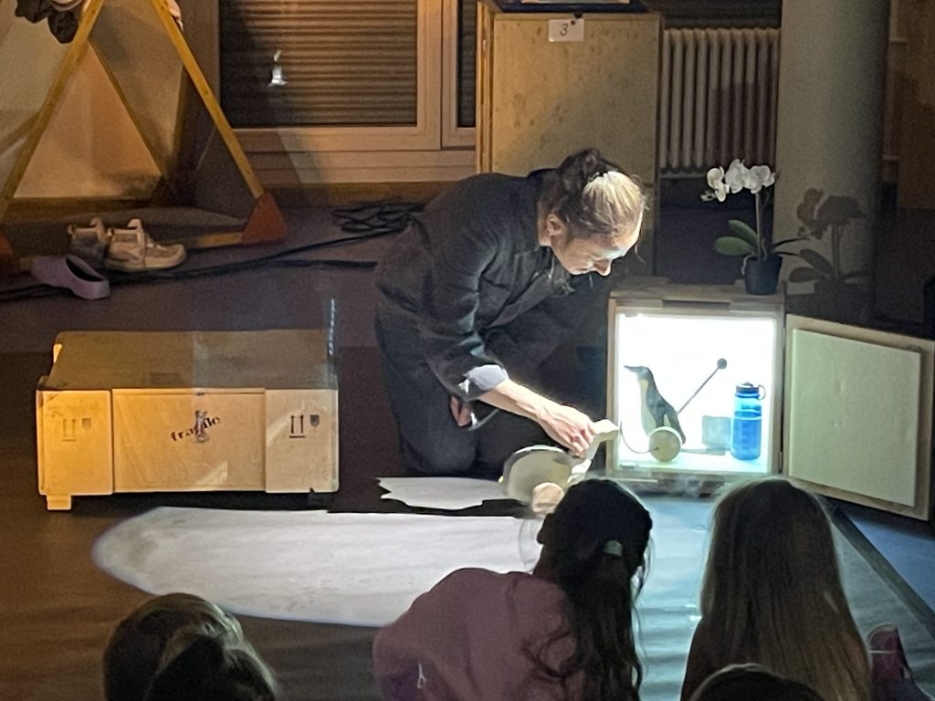 In den nächsten 35 Minuten erzählten die beiden Darstellenden die Geschichte eines Tieres, das während eines Unwetters auf ein Schiff gerettet wird. Dort begegnet es zum ersten Mal anderen Tieren, wird bestaunt, verglichen – und erlebt sowohl Neugier als auch Ausgrenzung. Mit viel Humor, Clownerie und Feingefühl gelang es dem Ensemble, Themen wie Freundschaft, Zugehörigkeit, Unterschiede und gegenseitige Wertschätzung kindgerecht und bewegend darzustellen.