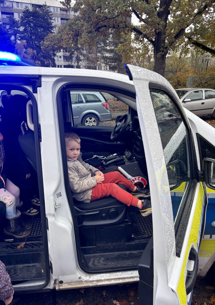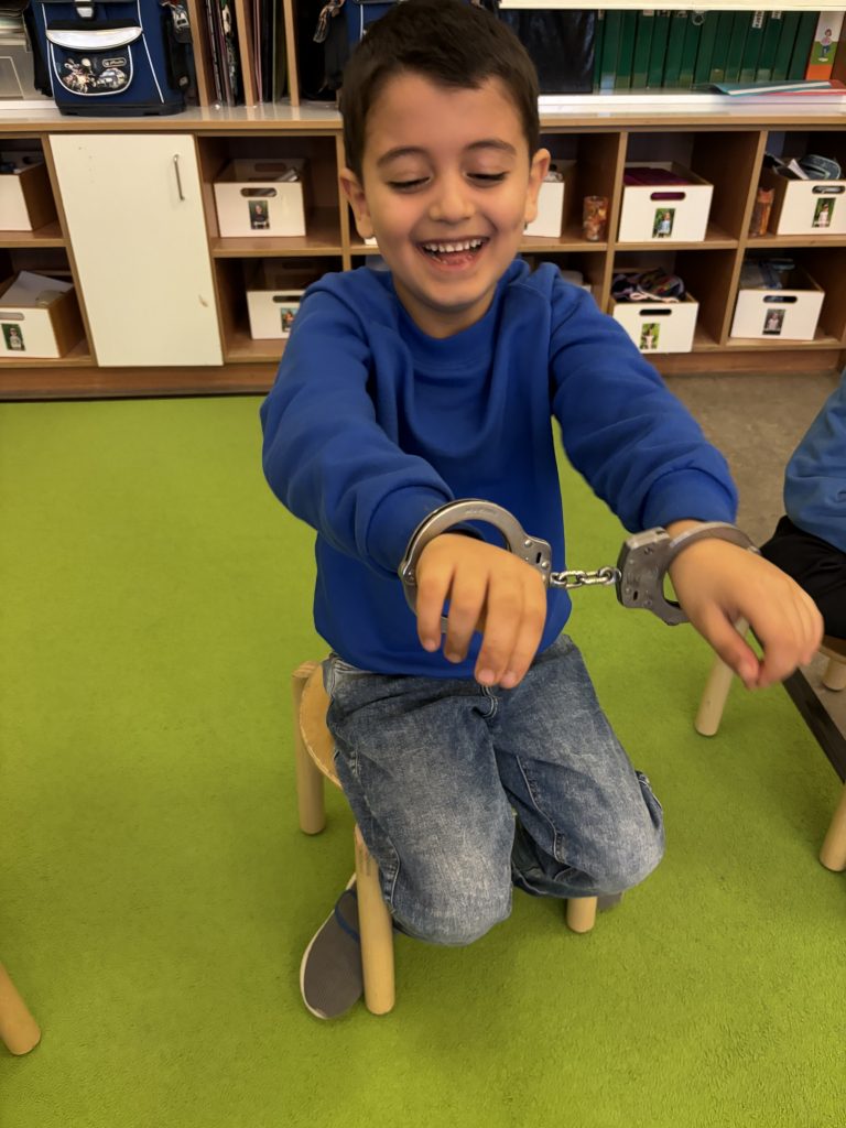 Ein echtes Highlight war das Ausprobieren von Handschellen und Polizeimützen – natürlich unter Aufsicht und mit viel Spaß. Zum Abschluss durften die Kinder im letzten Kitajahr sogar einen Blick in das Polizeiauto werfen. Das sorgte für strahlende Augen und jede Menge Gesprächsstoff.