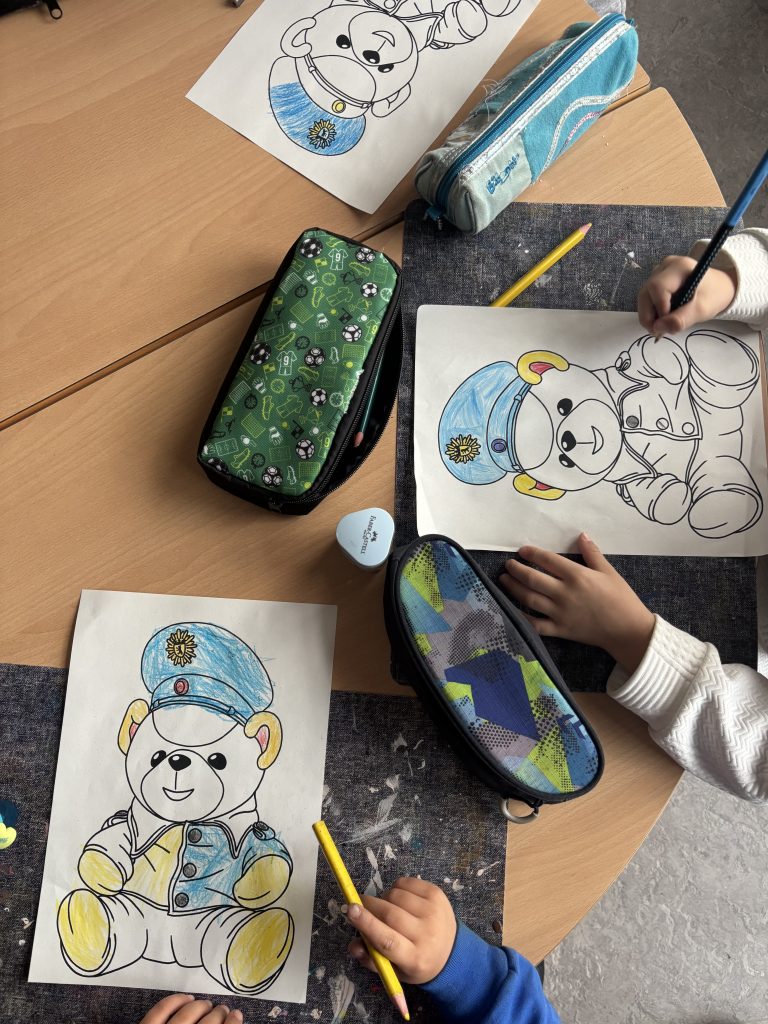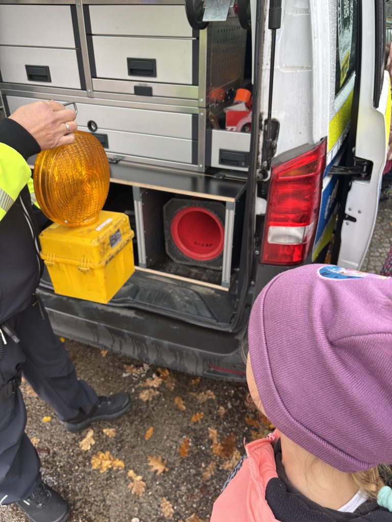 Mit vielen kindgerechten Erklärungen und anschaulichen Bildern zeigten die Polizistinnen, welche Aufgaben die Polizei hat und welche Ausrüstung sie im Einsatz dabeihat. Die Kinder waren begeistert und stellten neugierige Fragen, die geduldig und verständlich beantwortet wurden.