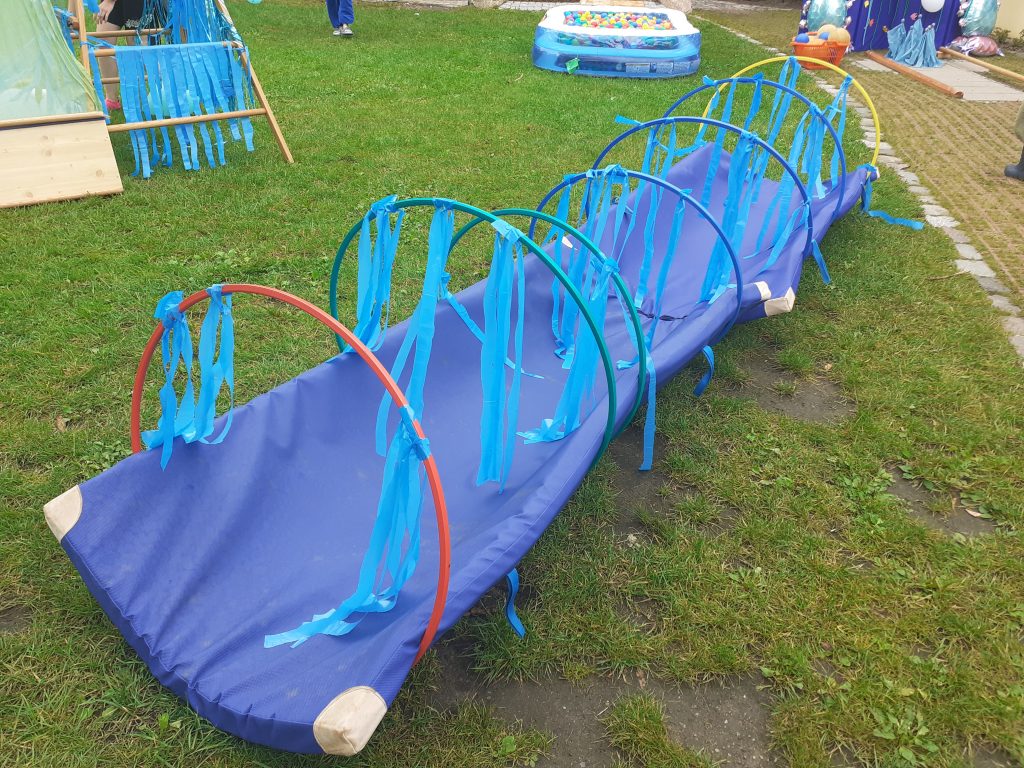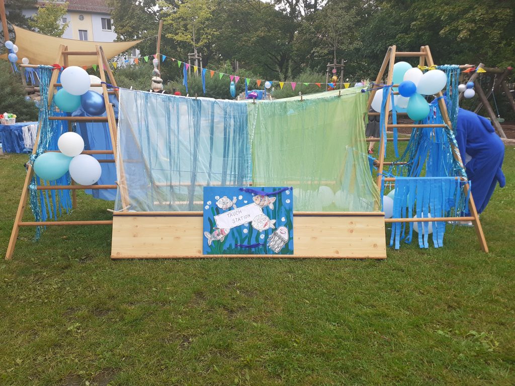 Zwischen schillernden Fischen, funkelnden Muscheln und selbst gebastelten Quallen konnten die Kinder in fantasievolle Rollen schlüpfen, tanzen, spielen und Neues entdecken. Für Bewegungshighlights sorgten sportliche Stationen und kleine Wasserspiele, bei denen alle Kinder mit strahlenden Augen dabei waren.