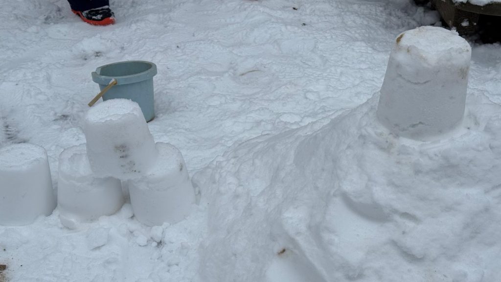 Im Kindergarten Tischlerzeile konnten unsere Kinder den Winter auf ganz besondere Weise erleben. Anstatt wie gewohnt Sandburgen zu bauen, hatten sie die kreative Idee, Schneeburgen zu gestalten. So wurde aus einem alltäglichen Spielplatzritual ein besonderes Winterexperiment.