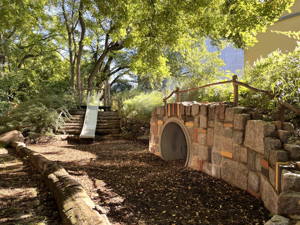 Ein Merkmal unserer Einrichtung ist die altersgemischte Betreuung, die den Kindern konstante Bezugspersonen bietet und ihnen ermöglicht, voneinander zu lernen. In jeder Etage gibt es für die U3-Kinder einen Rückzugsraum, um deren Bedürfnisse gezielt aufzufangen. Jüngere Kinder profitieren vom Wissen der Älteren, während diese durch das Erklären und Vormachen ihr Wissen festigen. Für eine optimale Teilhabe aller Kinder stehen uns Fachkräfte mit Zusatzausbildung zur Facherzieherin für Teilhabe und Inklusion sowie eine Heilpädagogin zur Verfügung.